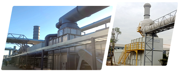 工藝沸石轉(zhuǎn)輪+CO 技術(shù)難點:塑膠加溫后廢氣含有高沸點物質(zhì),氣體溫度較高 方案:氣體冷卻后進入四級過濾,過濾去除焦油和顆粒物后進入沸石轉(zhuǎn)輪濃縮后進入CO氧化處理 結(jié)果:排放值5-8mg/Nm3